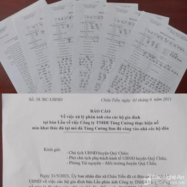 Báo cáo này được UBND xã chuyển lên UBND Huyện Quỳ Châu. Để rồi sau đó, UBND huyện Quỳ Châu thực hiện kiểm tra, xác minh và vào ngày 25/11/2020, UBND huyện Quỳ Châu có Văn bản số 721/BC-UBND báo cáo vụ việc lên UBND tỉnh cùng các sở ngành liên quan, và đề xuất: Đề nghị xem xét đình chỉ hoạt động khai thác của Công ty TNHH Tùng Cường tại vị trí bờ moong khai thác phía Tây do tiếp giáp đường dân sinh đi lại và một  số nhà dân, có nguy cơ cao gây mất an toàn lao động, ảnh hưởng đến đời sống, sinh hoạt của người dân khu vực lân cận. Đề nghị kiểm tra mức độ rung chấn, ô nhiễm bụi do nổ mìn khai thác…