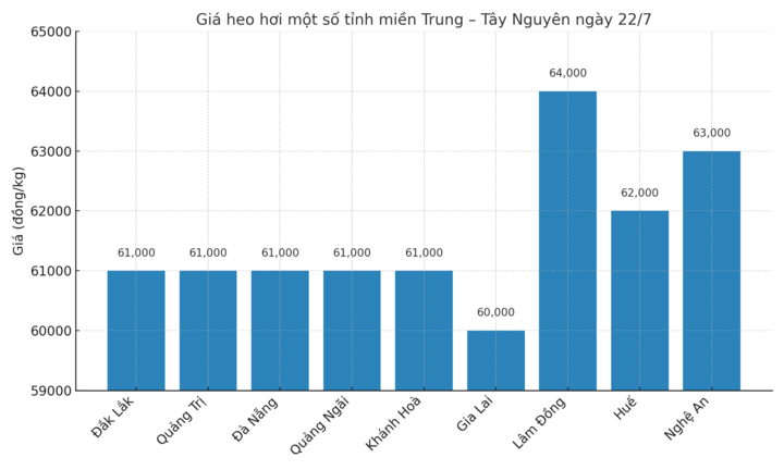 Biểu đồ giá heo hơi một số tỉnh miền Trung – Tây Nguyên ngày 22/7