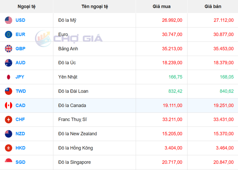 Ngân hàng OCB đang bán chuyển khoản Đô la Mỹ với giá thấp nhất là: 1 USD = 26.339 VND
