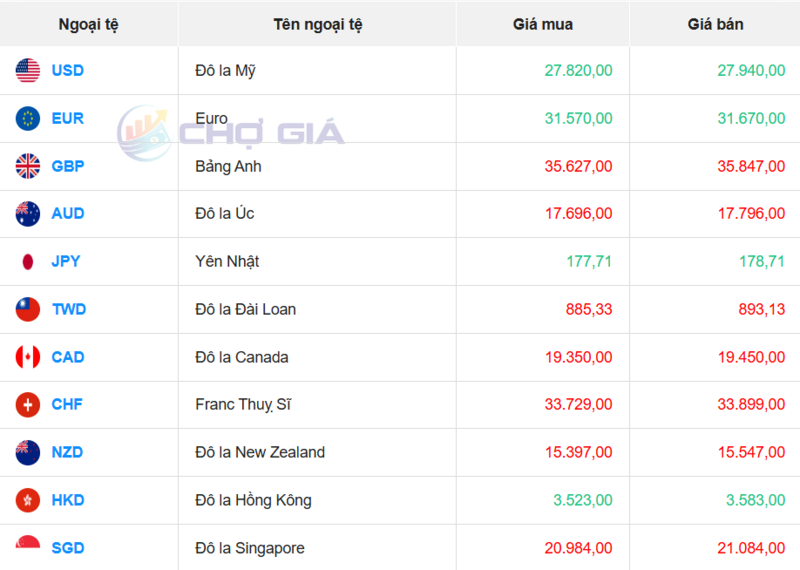 Tỷ giá USD tại một số ngân hàng hôm nay. Nguồn: Webgia.com.