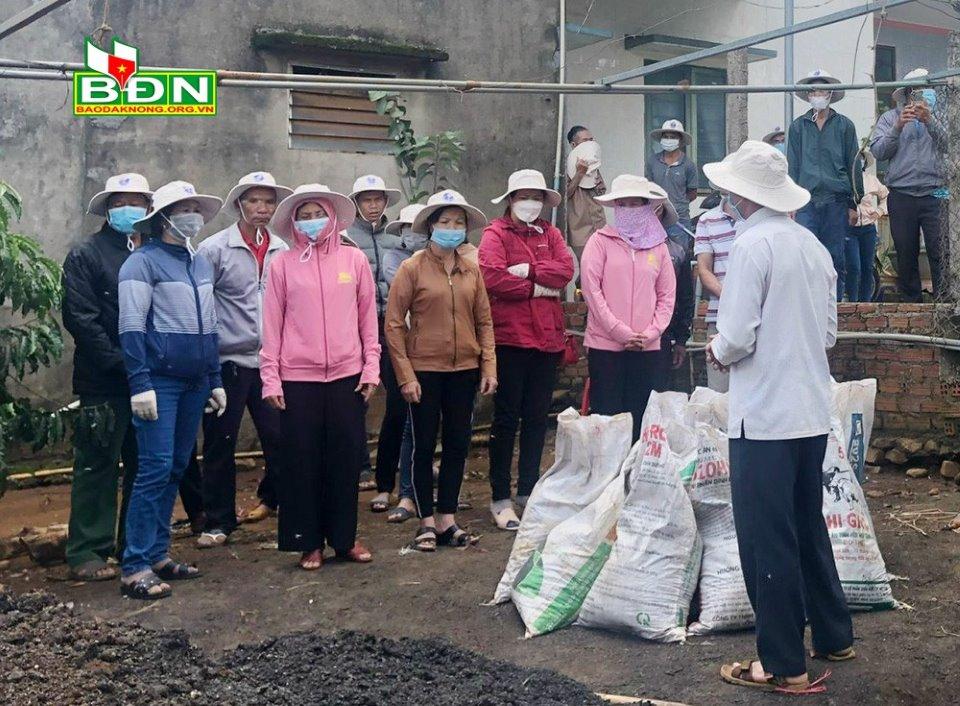 Theo ông Nguyễn Văn Anh, ở thôn Nam Tiến, xã Nam Nung (Krông Nô), gia đình ông chuyên trồng cà phê, hồ tiêu. Khi tham gia mô hình, ông được nhân viên kỹ thuật của Trung tâm Khuyến nông tỉnh hướng dẫn ủ 4 m3 bã thực vật làm phân hữu cơ.