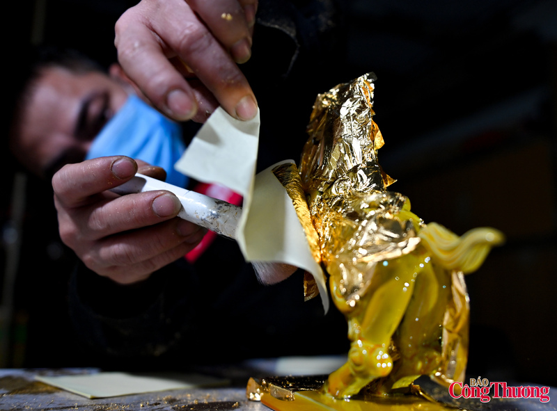 Đáng chú ý, công đoạn dát vàng được thực hiện hoàn toàn bằng tay.