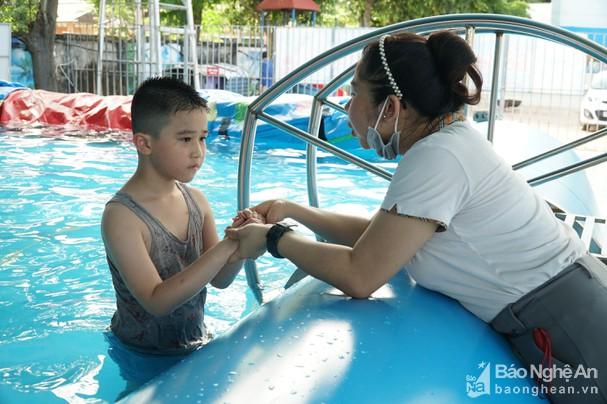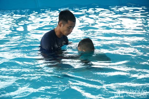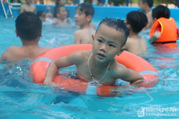 Chủ trương dạy bơi trong trường học đã được ngành giáo dục Nghệ An phát động nhiều năm nay. Tuy vậy, trong điều kiện kinh phí còn hạn hẹp, việc triển khai gặp nhiều khó khăn. Ảnh: Mỹ Hà