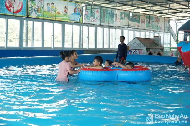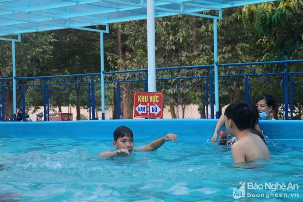 Nghệ An đã tổ chức lễ phát động toàn dân tập luyện môn bơi và phòng chống đuối nước. Vì thế, những mô hình bơi được triển khai tại các nhà trường sẽ là những tín hiệu tích cực giúp cho việc học bơi của học sinh ngày một hiệu quả và khoa học hơn, đáp ứng được đông đảo nguyện vọng của phụ huynh và học sinh. Theo báo cáo của Sở GD - ĐT, hiện trên địa bàn toàn tỉnh đã xây dựng và đưa vào hoạt động 121 bể bơi, trong đó có 64 bể bơi cố định và 63 bể bơi thông minh. Tuy nhiên, số bể bơi trong trường học đang đếm trên đầu ngón tay và chưa hoạt động hiệu quả như mong muốn. Ảnh: Mỹ Hà