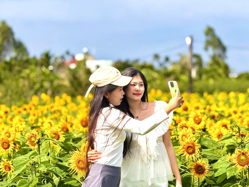 Mỗi ngày, từ sáng sớm đến chiều muộn, hàng trăm người đổ về cánh đồng hoa hướng dương đang nở vàng rực ở xã An Phú để check-in, chụp ảnh. Giữa nền trời xanh trong, hàng triệu bông hoa bung nở đồng loạt, nhuộm vàng cả một vùng không gian rộng lớn, tạo nên khung cảnh rực rỡ mà yên bình, khiến nhiều người có cảm giác như “lạc lối” giữa mùa xuân sớm.
